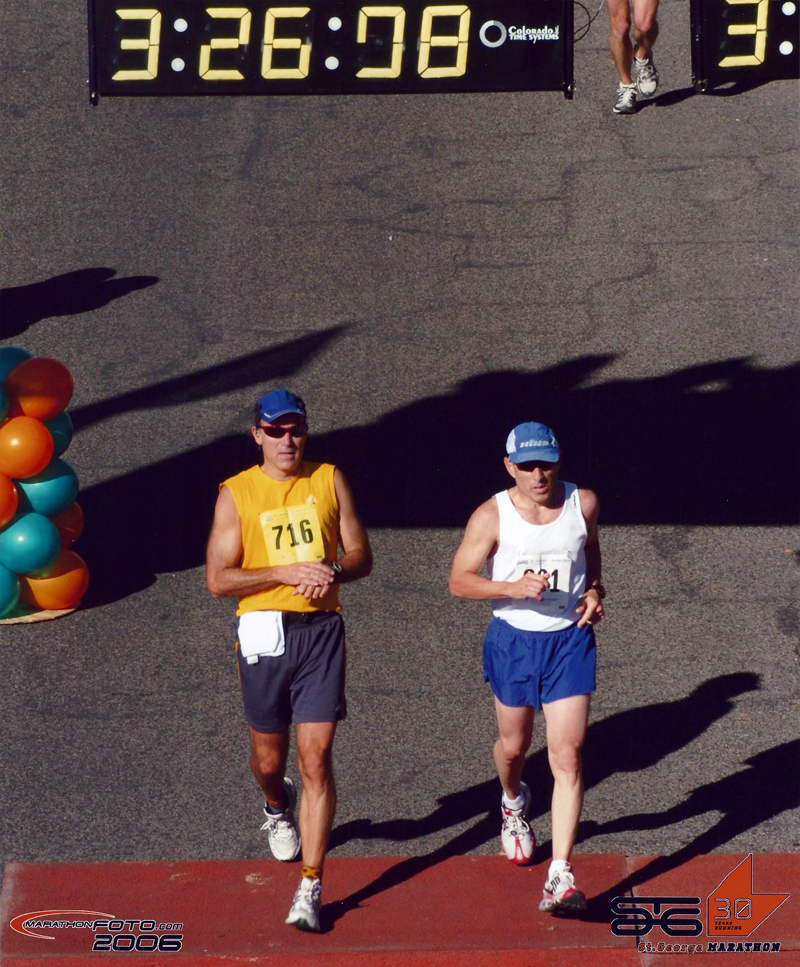 Crossing the finish line with Dave. One of those rare years where we ran the entire race together.